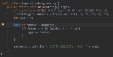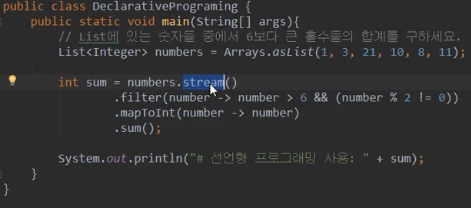 - 예제 이미지를 간단히 설명드리면 filter / mapToInt / sum 함수를 사용해서 실행해 줘라는 코드입니다.