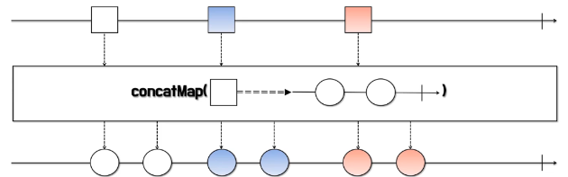 - 반환된 새로운 Observable을 하나씩 순서대로 실행하는 것이 FlatMap과 다릅니다.