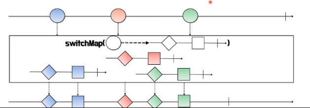 concatMap과 다른 점은 switchMap은 순서를 보장하지만 새로운 데이터가 통지되면 현재 처리 중이던 작업을 바로 중단합니다.