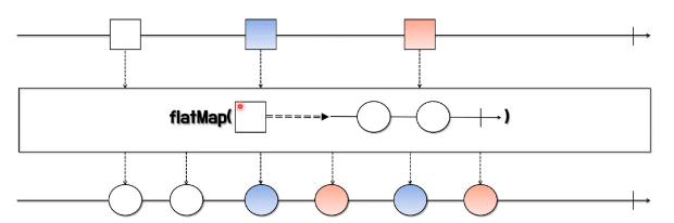 - map은 변환된 데이터를 반환하지만 flatMap은 변환된 여러 개의 데이터를 담고 있는 새로운 Observable을 반환합니다.