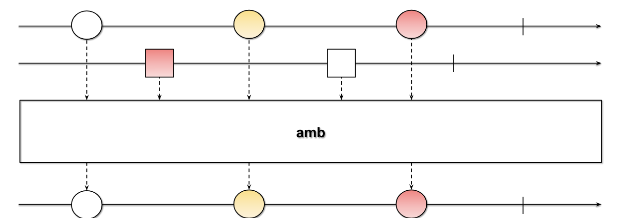 여러 개의 Observable 중에서 최초 통지된 시점이 가장 빠른 Observable만 통지되고 나머지 Observable은 무시됩니다.